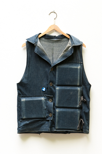 2004. 21 Photographic prints 50cm x 60cm. Carrying Vest. Glass & Metal display case.